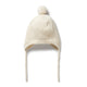 Your little one will look stylish and stay warm in this adorable cable knit bonnet. Crafted from a mix of cotton, bamboo and wool, this bonnet features pom pom ties to secure it in place, ensuring extra warmth for your baby's delicate ears.