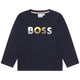 Jersey tee-shirt 100% organic cotton, long sleeves, rib on neckline, snap closure on the shoulder, "BOSS" print on the front.