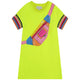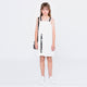 Dress, cotton polyester canevas, wholly lined in light viscose, front middle zipped, elasticated waist at back + LOGO illustration print.
