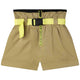 Shorts, polyester crepe ( short skirt length ), fancy waist with inserted elastic, tone on tone LOGO print.