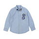 Denim bermuda shorts with elasticated waist with fancy lace and fancy illustration on back pocket.