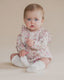 Warm and comfortable, this organic cotton blend velour romper features a gorgeous blossom applique and embroidery on the front with a front zip opening for ease of nappy changes and dressing your little one, the perfect stylish onesie for your little one's winter wardrobe.• Garment photographed in size 00 (3-6mth)• Organic cotton...
