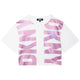 Cotton lyocell twill dress, adjustable straps by snaps, front zip fastener, front pockets, DKNY patch.